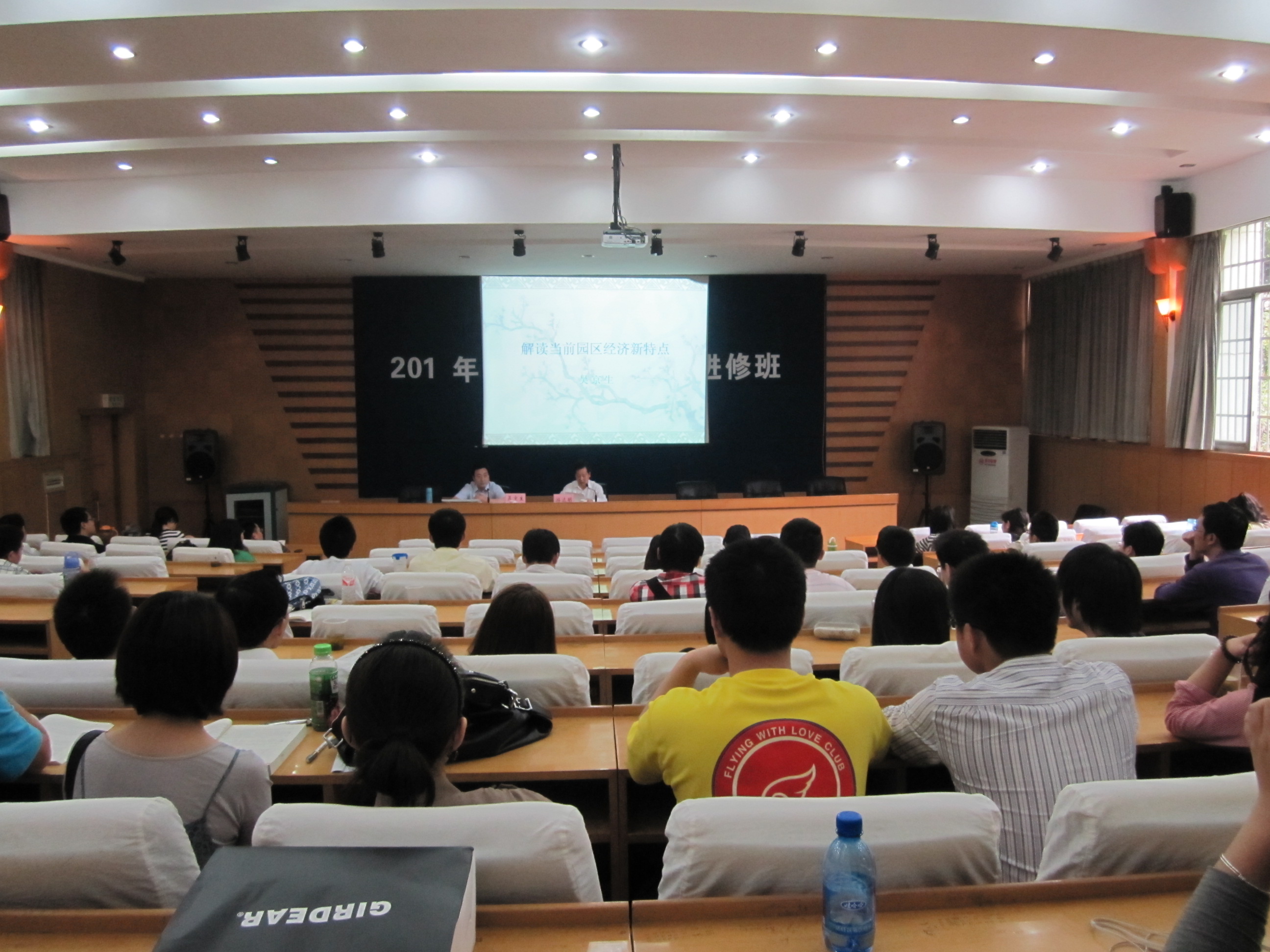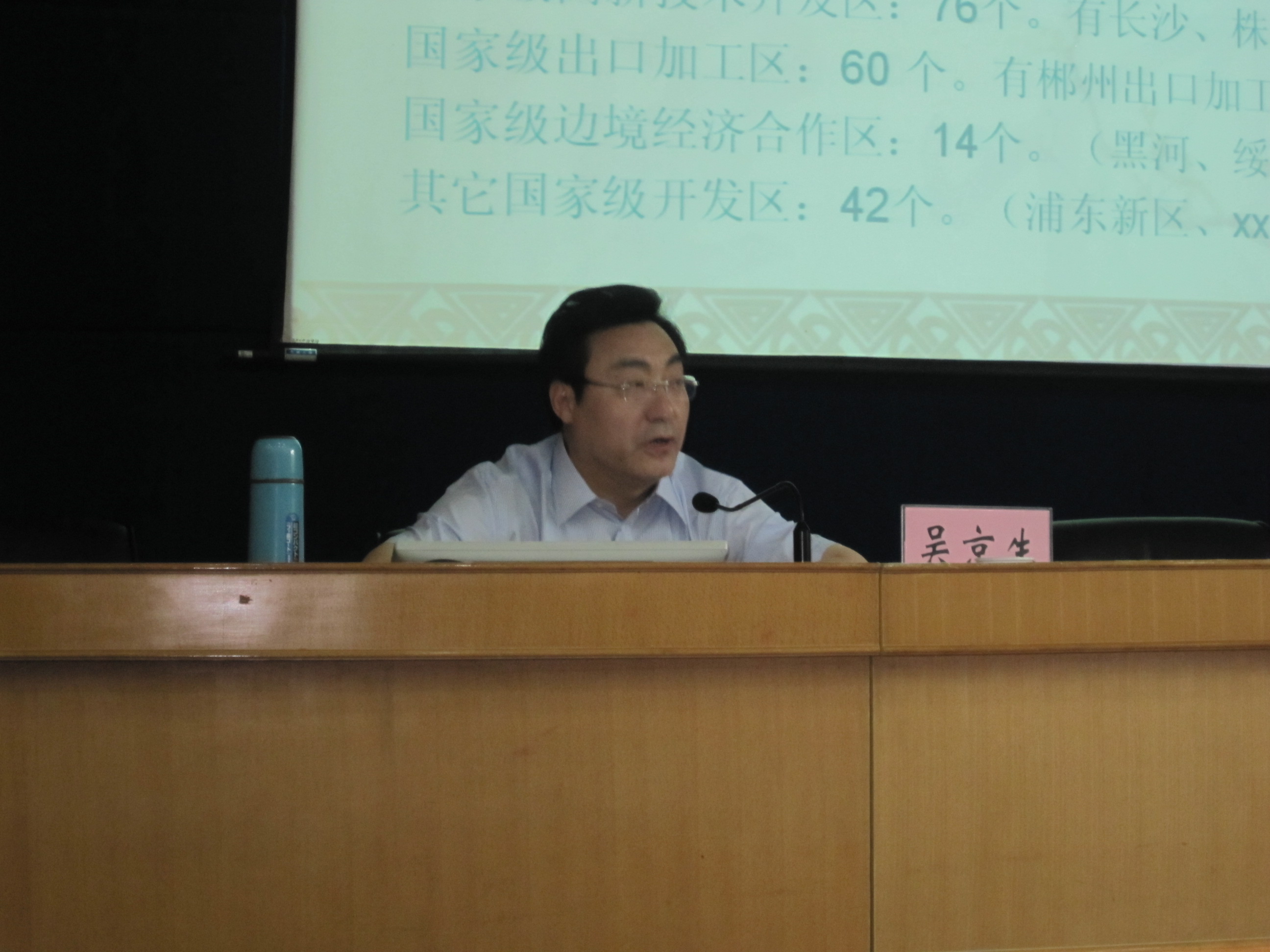 2011年5月14日下午三点,在管理楼108阶梯教室,星空官网特邀长沙经济技术开发区工委副书记、管委会常务副主任吴京生博士为星空官网研究生们解读当前园区经济特点。讲座由XK星空体育常务副院长游达明教授主持。
