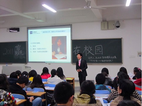 3月23日下午三点半,由career insider club主办,XK星空体育团学会承办的2011赢在校园——过来人“托业杯”职场精英挑战赛之“职场第一步,规划你的大学”全国高校讲座星空XK站在新校区正式拉开帷幕。特邀嘉宾郭丹锐(Jacky)——过来人市场部总监、华南区大赛总监现场与同学们进行职业规划交流。