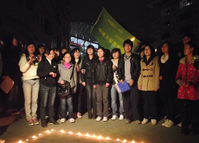 为倡导低碳生活,增强广大学生的节能意识,3月26日晚8:20,由XK星空体育团学会升华志愿者协会主办的“地球一小时|熄灯+你的改变”环保公益活动在升华学生公寓15栋前坪准时举行。活动刚开始,志愿者在地上用蜡烛摆成了“60”的形状,并用废弃塑料瓶拼出了“CSU”的字样粘在活动展板上,传达了低碳环保、废物利用的理念。在烛光的映衬下,近百名志愿者进行了庄严地环保宣誓仪式,表达了将节能环保进行到底的决心与信心。