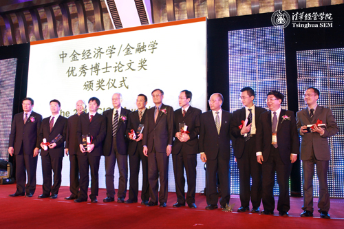 “中金论文奖”评审委员会主席、清华大学经管学院院长钱颖一教授代表评委致辞,并宣布本届论文奖的获奖学生名单。他在致辞中指出,中金论文奖秉承“思想改变世界,学术开创未来”的思想,旨在倡导求实创新和专心向学的精神,以此来促进对经济学和金融学理论前沿与现实问题的研究,为中国发现并培养未来优秀的学术和专业人才。钱颖一教授同时也感谢中金公司设立这一奖项以及为国内经济学教育和研究做出的贡献。他表示,理事会和评委会将继续做好评选工作,致力于将“中金论文奖”办成经济学和金融学领域的标杆奖。与钱颖一教授一同参加颁奖的还有社保理事会理事长项怀诚,中国投资有限公司董事长楼继伟,中国人民大学前校长黄达教授、中金公司董事长李剑阁、中金公司总裁兼首席执行官朱云来。