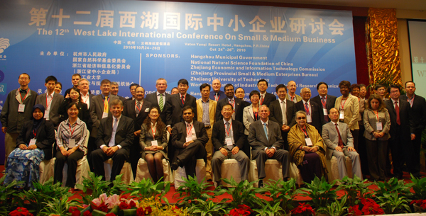 10月24-26日,由杭州市政府、国家自然科学基金委员会、浙江省中小企业局、浙江工业大学、世界工业与技术研究组织协会等单位主办的第十二届西湖国际中小企业研讨会在杭州隆重召开。经过12年的筹办,该大会在中小企业研究领域颇负胜名。此次大会汇集了70多位国际学者和专家,以及100多位国内的专家、学者和企业代表。大会开幕典礼由杭州市经济委员会主任赵纪来主持,浙江工业大学副校长陈杰教授、杭州市副市长沈坚等先后致开幕辞。