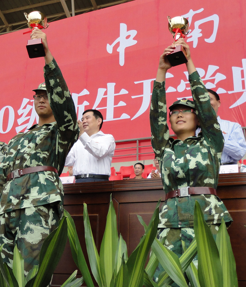 优异成绩的取得离不开学院领导、老师的关心支持。在新校区的军训场地上,不但有严格要求的教官、认真训练的新生,还有穿梭于新生之间的学院辅导教师这道靓丽的风景。在军训的16天,学工办两名辅导员老师作为军训指导员,每天都在训练场上,跟进军训进程,了解学生动态,为他们安排军训的各项事宜,解决期间的突发状况,给予新生最大的支持与鼓励,亲切的问候和细心的照顾为酷暑下训练的新生添上一抹清凉。学院领导也多次亲临新生军训现场,鼓励学生刻苦训练,要不怕苦、不怕累,不轻言放弃,让“优秀是我们的习惯”铭刻在每一位10级新生的心中,发扬“商院学子,勇争第一”的精神。