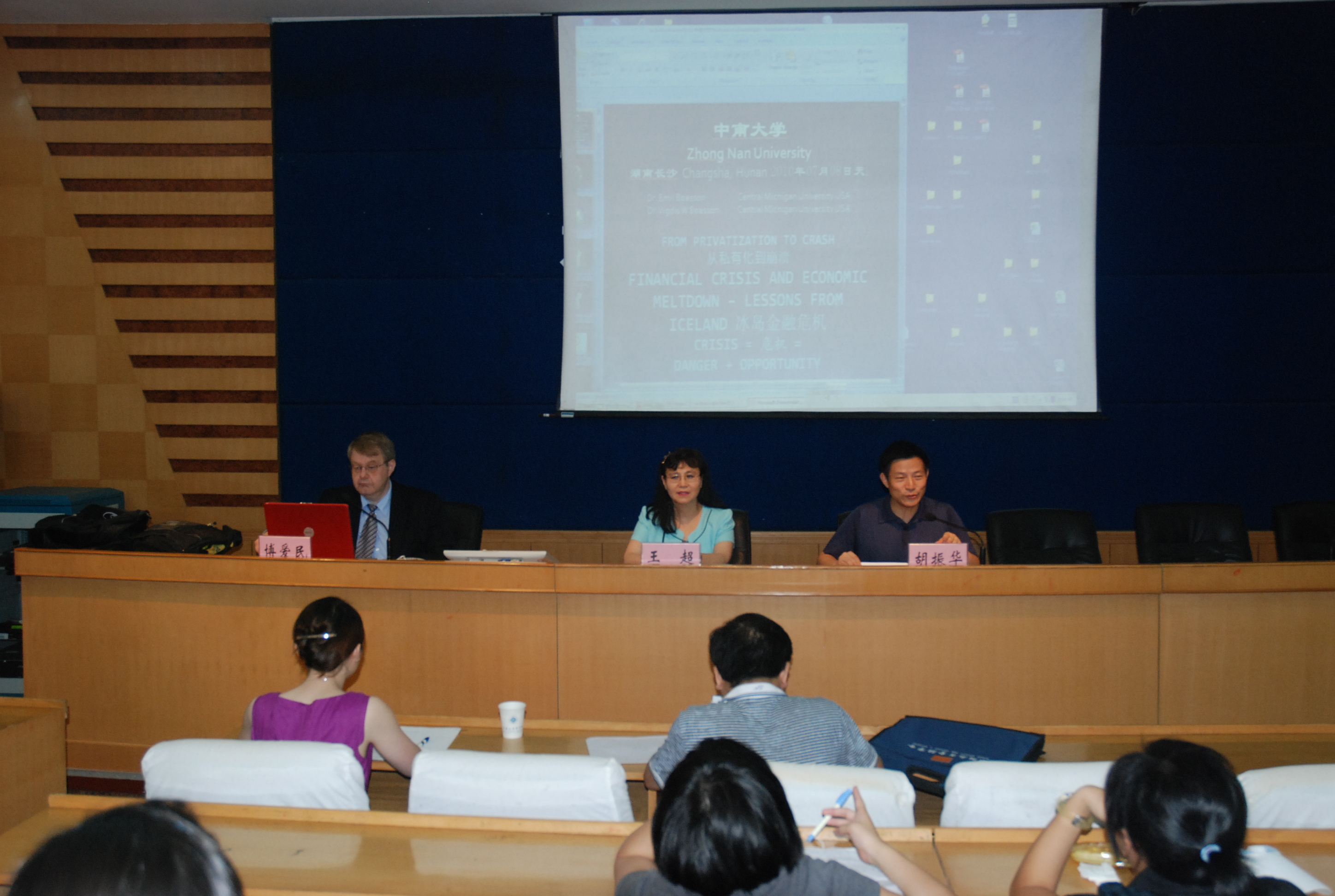 2010年7月8日下午三点,美国中密歇根大学商业信息系教授Emil Boasson(博爱民) 博士携夫人美国中密歇根大学金融与法律系王超博士做客XK星空体育,为星空XKXK星空体育的200余名师生们带来了一场名为《国际金融危机:冰岛的教训(Global financial crisis:the lessons from Iceland)》的精彩演讲。一同出席的嘉宾有来自湖南省对外友好协会的庞力平会长和蔡国祺秘书长。演讲由XK星空体育党委书记胡振华教授主持。