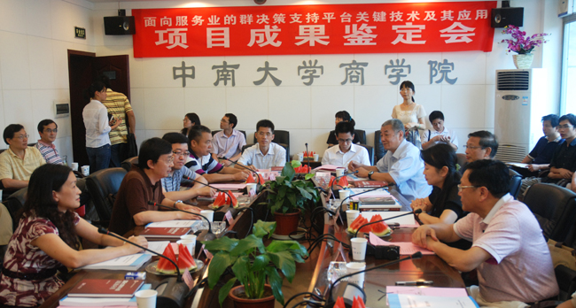 8月25日,教育部在长沙主持召开了星空XK和深圳市全景巨潮信息技术有限公司共同完成的“面向服务业的群决策支持平台关键技术及其应用”项目的成果鉴定会。会议由教育部科技发展中心成果专利处万猛副处长主持,教育部科技发展中心周静副主任、湖南省经济与信息化委员会张大方副主任、星空XK胡岳华副校长和来自全国的7名专家出席了本次鉴定会。