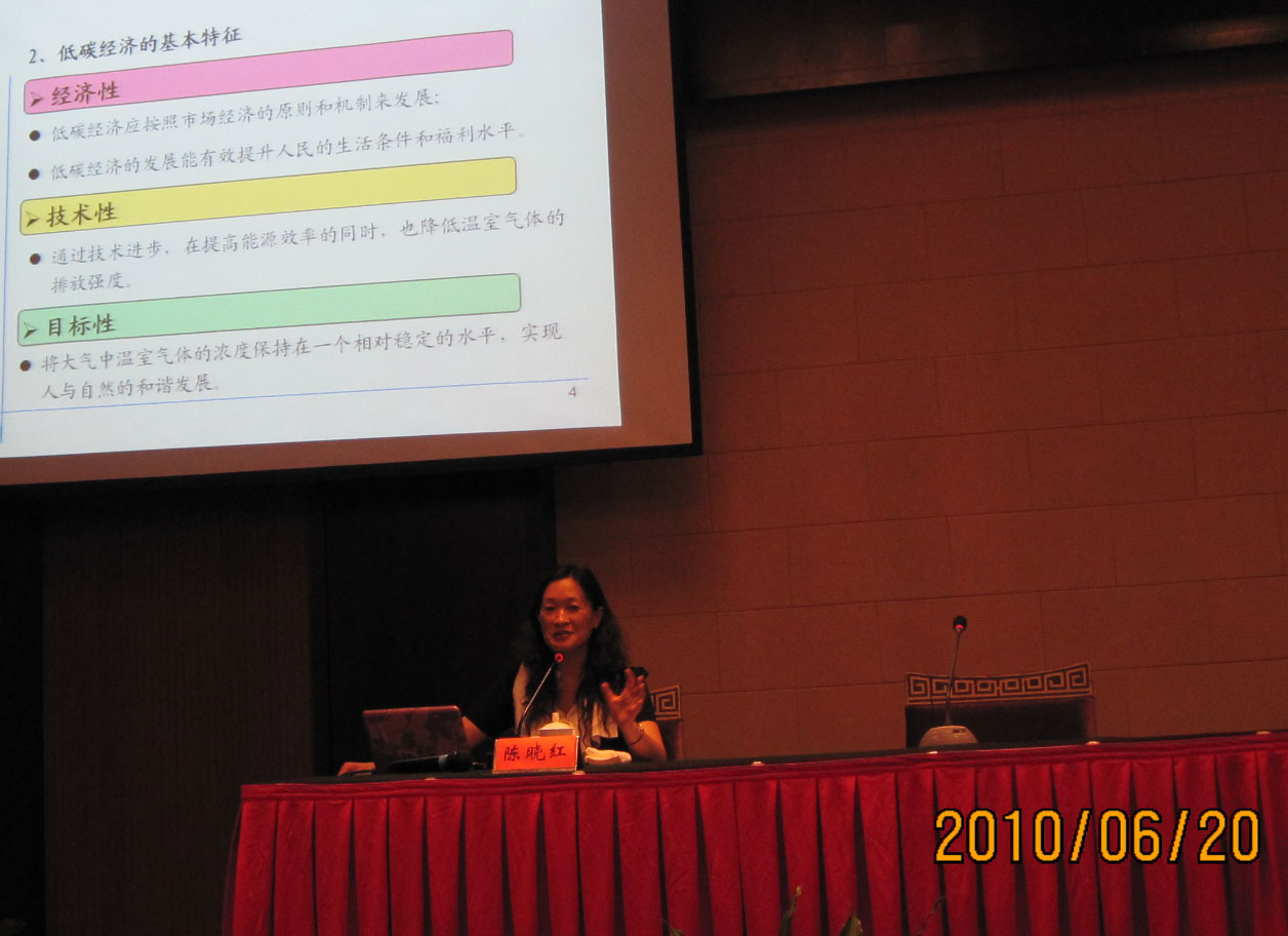 学员稍作休息后,陈晓红院长为学员作了一场精彩的“我国低碳经济发展战略展望”的讲座,低碳经济是目前全球的热点话题。陈院长首先阐述了低碳经济的基本概念和意义,然后从我国的角度进行分析,介绍了我国低碳经济的背景、发展条件和战略途径及政策,最后讲述了我国发展低碳经济的重要举措。