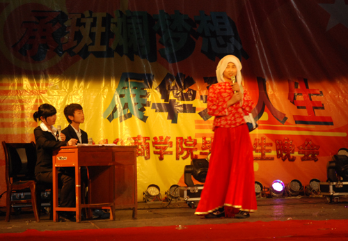 本次晚会分为“回首”、“分享”、“奋斗”和“展望”四个部分。在“回首”部分中,来自经管0902班全体师生用一首原创歌曲《惜望》,唱出了大学四年里走过的点点滴滴,倾诉着离别前淡淡的感伤与哀愁;在“分享”部分中,歌曲《传递梦想》、爵士舞蹈《舞动青春》等节目魅力十足、激情无限,带动着现场每一位观众的热情;在“奋斗”部分中,双人舞蹈《奋斗》、武术《龙拳》等表演慷慨激昂,活力四射,昭示着大四毕业生正以昂扬向上的心态去奔往更加美好的未来;最后的“展望”部分中,即将毕业的大四学生通过他们精心编排的小品、歌曲等精彩演出告诉全院师生,他们已经做好了准备,他们定人生的新起点上定会闯出一片属于他们自己的天空。