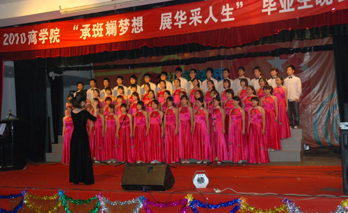 今宵欢聚一堂抒豪言,明天各奔前程酬壮志,祝2010届毕业生承斑斓梦想,展华采人生!