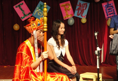 精彩的节目是看点,意外的惊喜更是亮点。热情高涨的互动游戏和话剧表演《魔椅》之后,在许慧淡雅忧伤好似天籁的古筝之音的伴随下,刘淑超舞动着手中的毛笔,凭借着深厚的书法功底写下了“鸟语花香”四个大字,观众们不觉沉醉于其中,仿佛早已被这两位温柔娴静的女子带到唐宋时期文化古韵的魅力中去了。