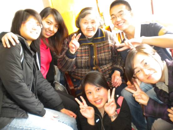 我们带上精心为老人们准备的礼物,领取义工证后,走进了老人们的宿舍。老人们见到我们,异常兴奋和激动;他们的乐观与活泼感染了我们每一个人,大家都主动地替老人打扫房间、听老人唱歌、与老人下棋、陪老人在院子里散步……房间里不断传出爷爷奶奶们幸福的笑声。我们的关爱,让他们享受了天伦之乐。