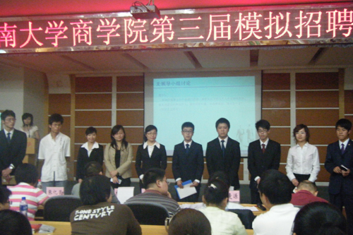 比赛共分自我介绍、无领导小组讨论、压力面试、争锋相对四个环节,研究生本科生同台PK,赛制为淘汰制。自我介绍环节主要考察应聘者的语言表达及逻辑思维等能力,每个选手需要在一分钟内让大家认识自己,为了能够做好这块打动面试官的敲门砖,选手们各显其能来“推销”自己,有的自信大方、有的幽默诙谐,有的朴实中肯,淋漓尽致的将自身的特点呈现在大家面前;无领导小组讨论,是将选手随机分组,每个小组一个讨论问题并给予15分钟的讨论时间,随后评委对各小组及各个应聘者在讨论期间的表现给予点评,目的是考察应聘者的组织协调能力、领导能力、人际交往能力、辩论说服能力以及决策能力,同时表现被评价者在自信心、进取心、责任感、灵活性、情绪稳定性及团队精神等个性方面的特点和风格,从而能对应聘者有深入了解;压力面试无疑是比赛中最紧张和刺激的环节,经过上一轮的淘汰后剩余的15名选手“一对多”的接受面试官的问题轰炸,面试官有意制造紧张气氛,以了解求职者将如何面对工作压力,对于面试官的“打破沙锅问到底”,选手们见招拆招,用机智幽默的语言规避问题中的层层陷阱,不仅做到摆脱压力,更是将压力转变为自己争得面试官青睐的动力;最后的争锋相对环节由上一轮淘汰留下的5名选手进行终极PK,集体接受专家人士的提问,他们针锋相对,斗智斗勇,精彩的回答得到了大家的阵阵掌声。