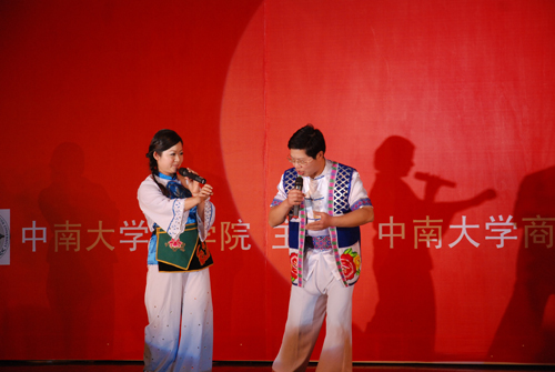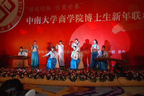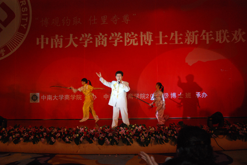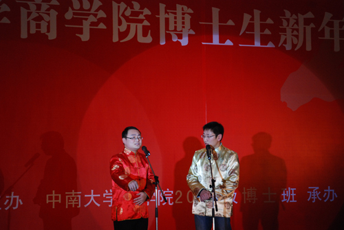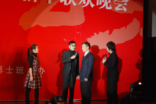 晚8时,联欢晚会正式开始。晚会邀请到湖南卫视著名主持人汪涵和熊琦主持晚会。节目在温情脉脉的09级博士生生活DV短片中开场,一幅幅温情的画面记载了09级博士生在校生活的每一寸足迹。随后,同学们纷纷展现了自己精心编排的节目,群口相声“三句半”,素材来自任课老师,形象生动,幽默风趣;手语舞《感恩的心》让大家感受到奉献的快乐,感恩的温暖;相声《博士生的美好生活》将09级博士生日常生活穿插在内,极具创意,在场观众不禁捧腹大笑;颇具专业水准的中国传统的曲艺艺术《女驸马》令大家耳目一新;已是一家公司管理者的何大庆表演了个人综艺秀,集说唱表演于一体,展示了09级博士生良好的综合素质;陈晓红院长和胡振华书记联袂合唱的《我和你》表达了对大家的美好祝愿;晚会穿插的“抢凳子”“猜字谜”等游戏更是将晚会推向了高潮,汪涵不忘他搞笑的天赋,在场观众笑不拢嘴。最后,晚会在激情四射的舞蹈中圆满落下帷幕。