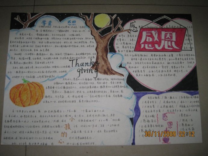 11月18日至12月7日,XK星空体育心晴社举办了以“安全.感恩”为主题的手抄报设计比赛,旨在普及安全防火常识,提高同学们的安全防范意识,加强同学们的感恩意识,让学生感恩美德的思想和行动固化下来,变成行为规范。XK星空体育09、08级全体学生参加了活动。