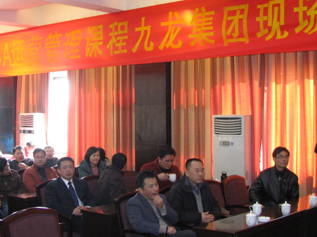 活动的最后一站,学员们一起来到了湖南九龙经贸集团有限公司。作为湖南省民营企业前十七强的湖南九龙经贸集团有限公司,总部坐落在娄底市中心,涉足地产、物业、国内外贸易、商业、农业科技等广泛领域。在莫逆同学(九龙公司董助、九龙物业公司总经理)热情洋溢的介绍下,学员们不仅参观了九龙实业有限公司的多处地产及其它项目,同时也为该企业在井然有序的运作管理之下呈现出的欣欣向荣而感叹,管中窥豹,这也是金融危机仍未消弥的宏观环境下,湖南民营经济坚挺依旧、活力盎然的缩影。