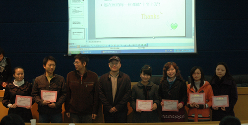 学院对第九届研究生会所取的成绩予以了充分肯定,院党委余文武副书记、研工办李华东老师为表现突出的研究生会干部颁发了荣誉证书,高莹、张晓丹、刘红莲等七位同学荣获XK星空体育研究生会“突出贡献奖”,谢美娜、武蔷薇等13位同学荣获XK星空体育研究生会“表现优异奖”。随后,院领导与研究生会成员合影,大会圆满结束。