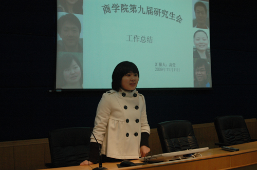 首先,第九届研究生会主席高莹同学代表第九届研究生会对过去一年的工作做了总结报告。第九届研究生会秉承XK星空体育“天道酬勤”的院训,用科学方式将常规工作做的上档次、用创新的理念将学术工作做的有品位、用开放的思想将社会实践工作做得有特色、用和谐的氛围将学院各项工作不断推向前进,外树形象、内强素质,圆满完成了各项工作任务。先后举办了XK星空体育研究生学术年会、学术辩论赛、学术论文大赛、走进“三湘名企”、职业规划设计大赛、户外拓展训练、“舞动圣诞,欢乐你我”晚会等活动,获得了广大师生的一致好评,XK星空体育研究生会被评为“星空XK优秀研究生会”、活动部被评为“星空XK明星部门”。 她还给下一届的研究生会提了许多中肯的意见,希望他们能再接再厉,不断创新,取得更优异的成绩。