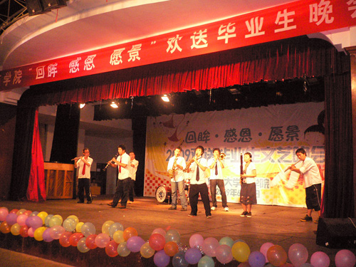 晚会在以记录09届毕业生在校生活的点点滴滴为主题的DV短片中拉开了帷幕,熟悉的环境、亲切的面孔,大学四年一幕幕温馨的画面浮现眼前,令许多在场的毕业生热泪盈眶;欢快的舞蹈秀《MY OH MY》则将大家从忧伤的情绪中拉出,进入欢乐的海洋;民乐《赛马新曲》、《紫竹调》《新龙舌兰》传统艺术中彰显现代潮流元素,令人耳目一新;反映毕业生求职遭遇的话剧《打工奇遇》幽默滑稽,令现场观众捧腹大笑;毕业生党支部成员带来的诗朗诵,声情并茂,道出了对目院、母校的不舍与留恋;高招迭出的魔术表演更是将晚会推向高潮,让人目不暇接;歌曲《天空》、《感谢亲人》婉转凄切,优美动听,唤起了大家的共鸣,真挚的表达了对对学院师生感恩和祝福。
