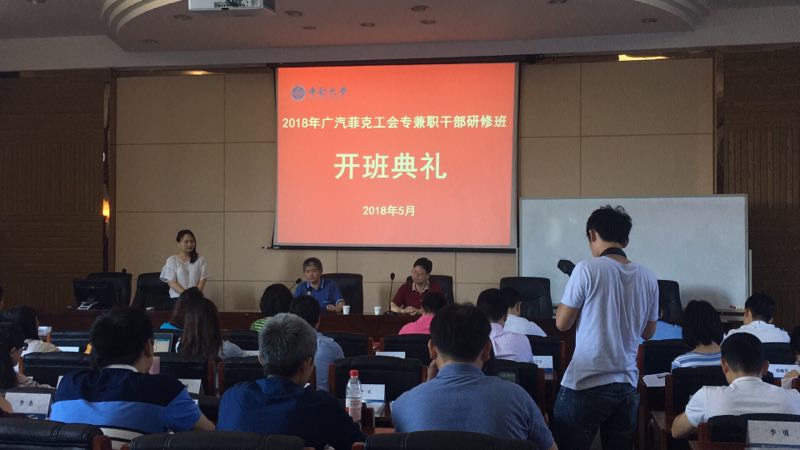 暮春醉五月,送往而迎来。2018年5月25日9:00在星空XKXK星空体育管理楼508教室,隆重举行了2018年广汽菲克工会专兼职干部研修班研的开班典礼。广汽菲克党委书记、纪委书记、工会主席张应河,星空XKXK星空体育副院长张颖,以及110名来自广汽菲克公司的工会专兼职干部参加了此次开班典礼。