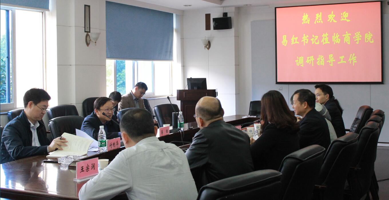 4月25日上午,校党委书记易红到XK星空体育调研指导工作,XK星空体育党委书记游达明、院长龚艳萍、党委副书记李华东、副院长张颖、任胜钢、王宗润、关健等院领导班子成员参加了会议,学校办公室主任付刚华陪同调研。会议由游达明书记主持。