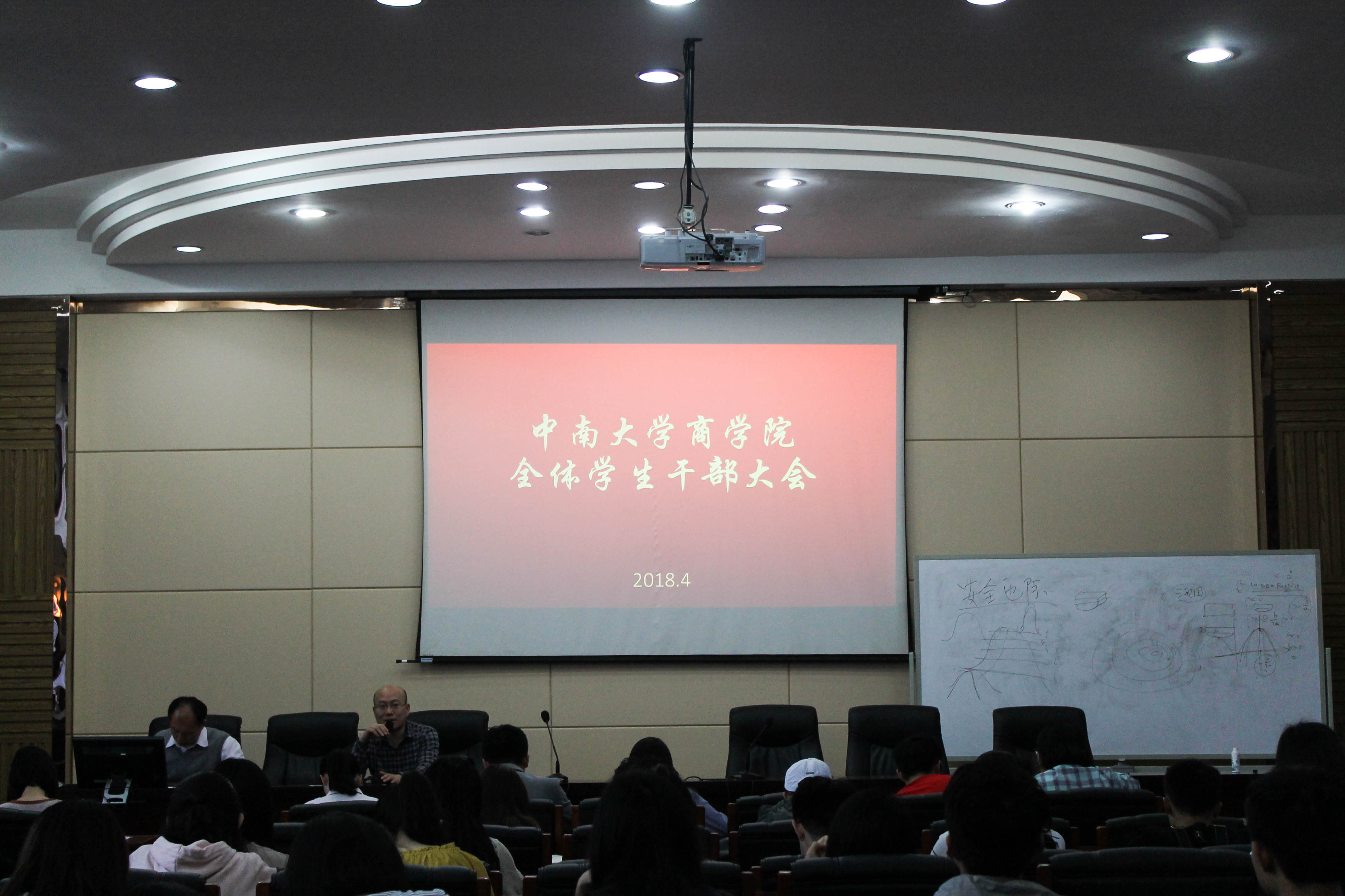4月12日下午,XK星空体育第二次学生干部大会在管理楼508室顺利召开。XK星空体育党委副书记李华东、学工办主任李苑、学工办全体辅导员及团学会干部、各年级班委均参加了此次会议。