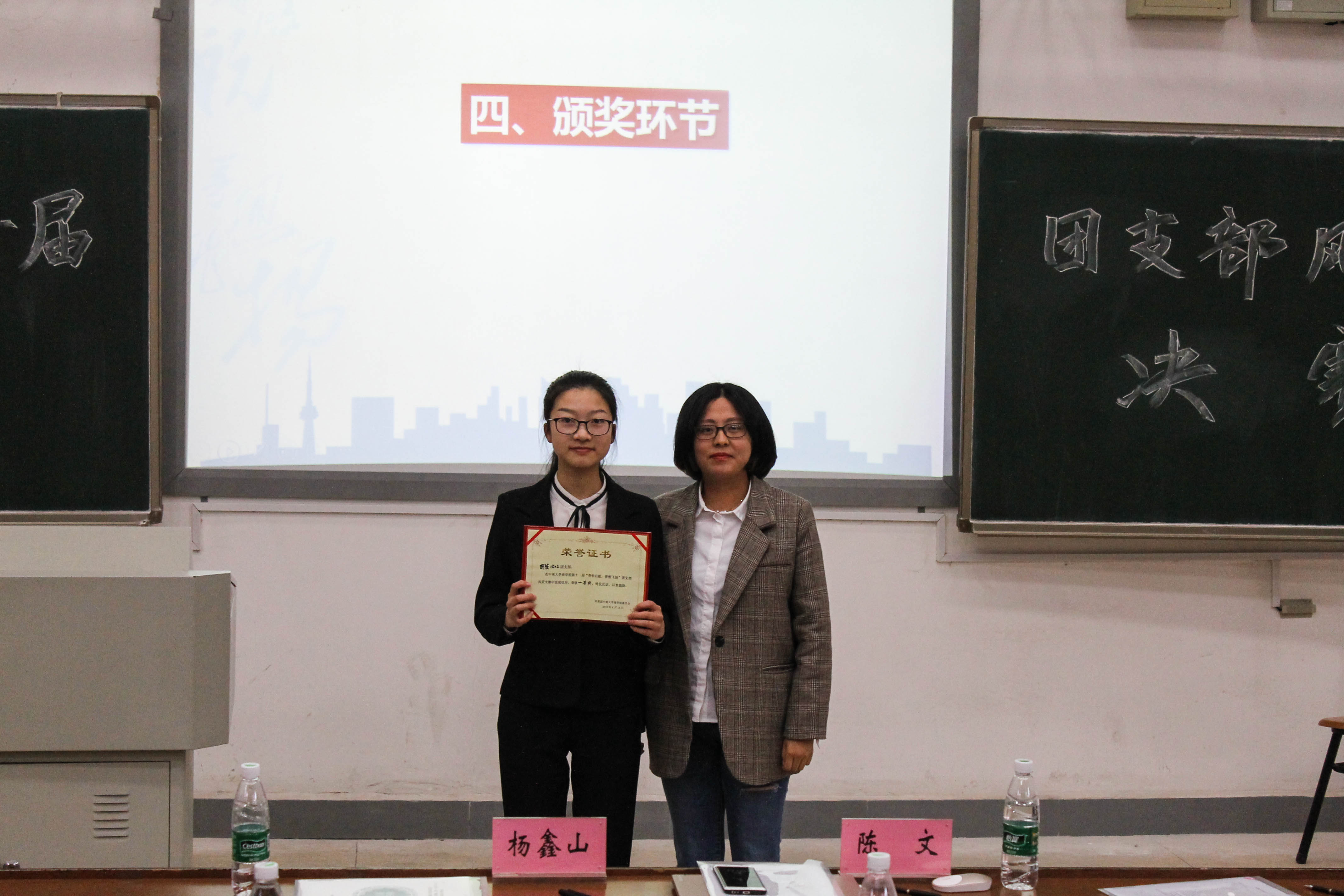 赛后,陈文老师进行总结致辞。她对各团支部取得的成果表示了肯定,对各支部积极向上的精神给予肯定,同时对一直尽心尽责的团支部负责人表示衷心的感谢。展望未来,她希望各支部互相帮助、共同进步,结合新媒体时代的要求,一起为创新有活力的团支部建设而努力。