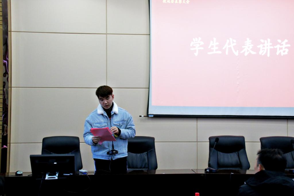 学生代表张梓依、周泽朋代表所有运动员向一直关心支持他们的学院领导、老师和同学们致以最真挚的谢意,并表示将不断拼搏,超越自我,再创佳绩。