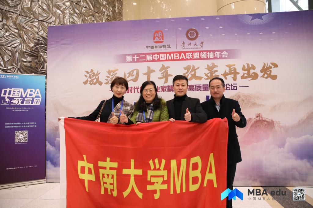 2018年12月15日-16日,第十二届中国MBA联盟领袖年会暨“新时代的企业家精神与高质量发展”论坛在“大数据之城”——贵阳贵安新区贵阳会议中心召开。本次年会和论坛是由中国MBA联盟和贵州大学联合主办,贵州大学管理学院、贵州大学MBA联合会承办。我校MBA中心副主任杨秋娟老师带队,MBA中心张龙伟老师,MBA联合会副主席喻海波、外联部部长郭佳应邀与来自全国100多所知名院校师生、知名企业家出席了本次盛会。中央电视台、贵州电视台、中国MBA教育网、新浪网、腾讯网等媒体全程宣传及报道。