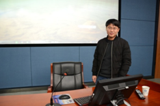 王坚强教授首先就人工智能环境下的管理科学研究问题进行了报告。王坚强教授从工作中的财务报账细节谈起,结合自身的科研经历,旁征博引,分析了未来人工智能环境下管理科学领域可能面临的研究问题。他列举了自助财务报账、无人驾驶的共享模式以及智能制造等方面的前沿科学问题,指出在人工智能环境下相关的管理模式亟需改变,并鼓励大家在科学研究中要勤于思考,敢于动手,敢于创新。