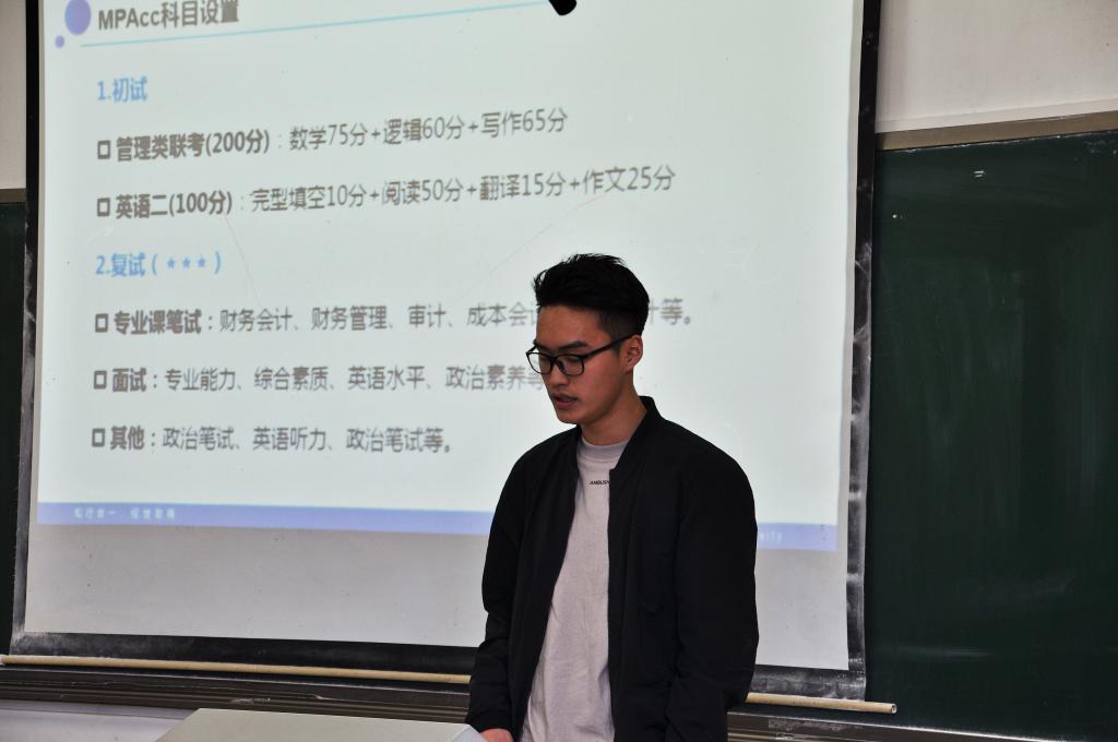 4月17日下午,星空XKXK星空体育16级考研交流座谈会于新校区B座304教室圆满举办。会议由16级辅导员石越主持,金融15级刘飞鸿、会计15级郑立彬、国贸15级刘腾、国贸15级高思琪担任主讲。