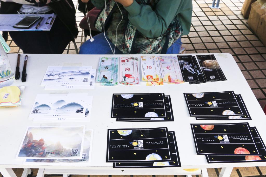 本次义卖活动历经了线上创意推广、线下艺术加工等精心筹备,分为跨年和春拾两大系列,推出了具有时代特征、商院特色的文创产品,主要分为其中包括台历、笔记本、鼠标垫、钥匙扣、明信片等。