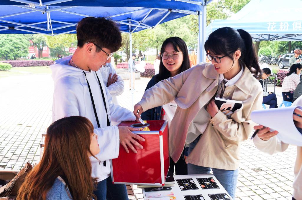 活动期间,南校升华广场人头攒动,整个活动现场暖意涌动,热闹非凡。义卖活动的各类物品物美价廉,通过线上线下的义卖及抽奖等形式,吸引了不少师生前来购买。工作人员耐心地招呼着每一位在摊位前驻足的爱心人,对他们的帮助与支持表达了衷心的感谢。大家不仅买到了自己需要的物品,更为“青梅拾光”计划贡献出自己的一份力量。