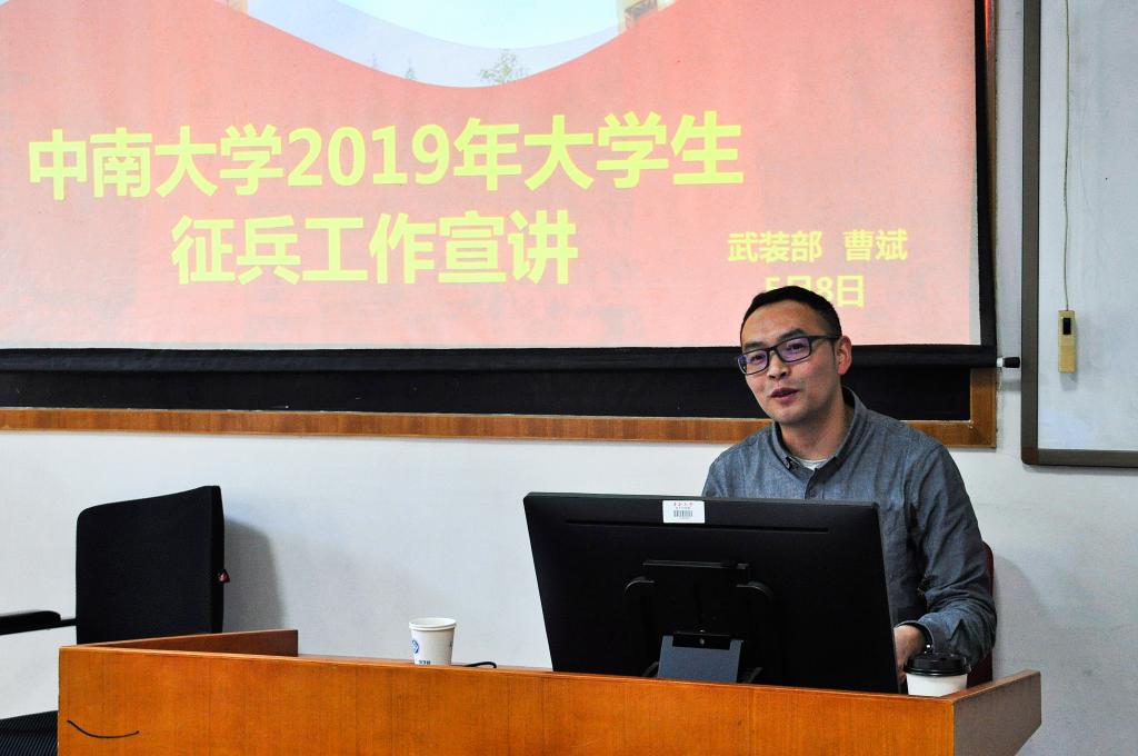 “热血中南好儿女,报效祖国当兵去”。5月8日下午,星空XKXK星空体育2019年征兵工作宣讲会于校本部管理楼圆满举行。XK星空体育党委副书记陈迎明,16级辅导员石越出席会议。会议由武装部曹斌老师主讲,学院征兵专干黄河沙主持。