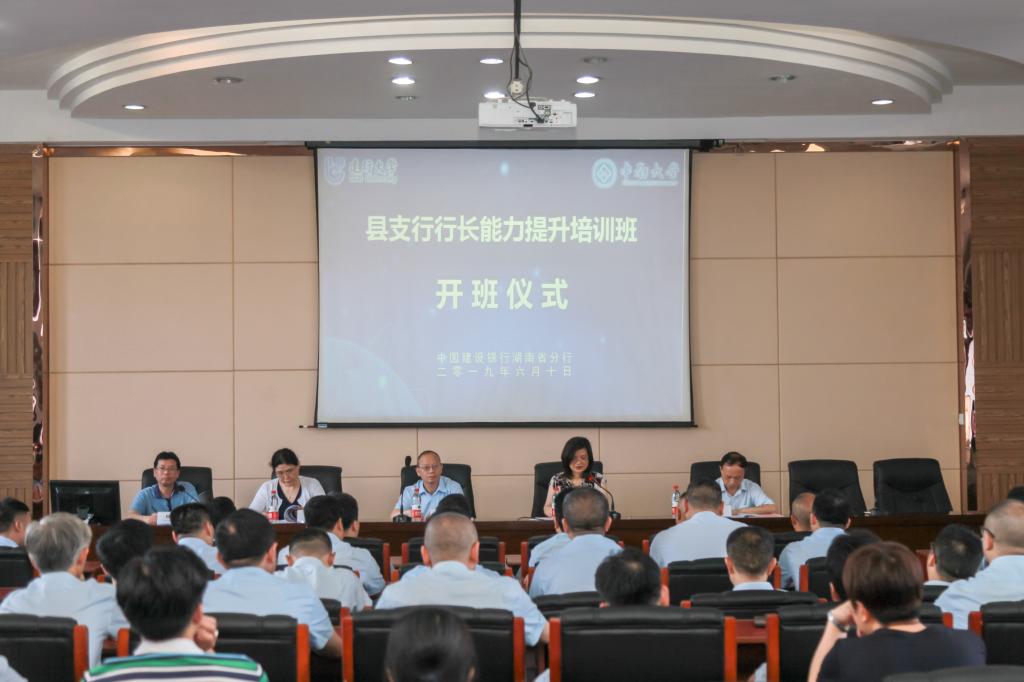 正值仲夏,由星空XKXK星空体育承办的2019年建行湖南省分行“县支行行长能力提升”培训班于6月10日上午正式开班,并在XK星空体育管理楼508教室举行了简短而又隆重的开班仪式。出席仪式的有省建行人力资源部总经理尹向东,省建行人力资源部副总经理、培训中心主任胡昌平,星空XKXK星空体育院长龚艳萍教授,星空XKXK星空体育副院长刘咏梅教授。仪式由星空XKXK星空体育EDP中心周浪波主任主持。