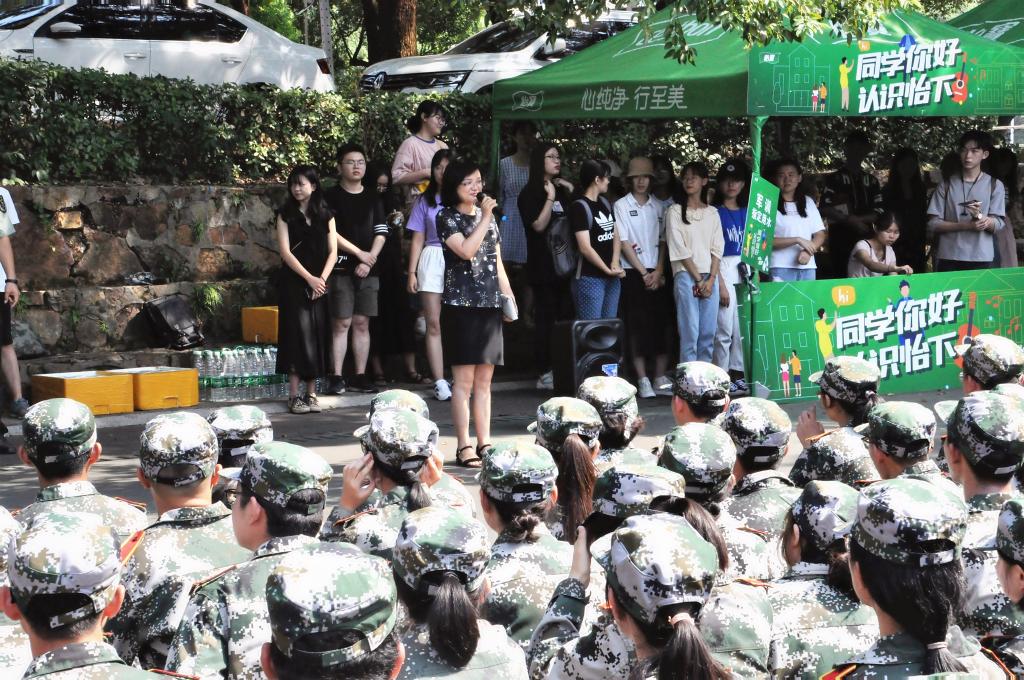 任胜钢书记则与新生分享了他学生时代的军训经历,将过往的艰苦条件与如今的优越环境作对比,希望新生在军训和今后的学习生活中锻炼自己,以优异的表现报效祖国的期许。