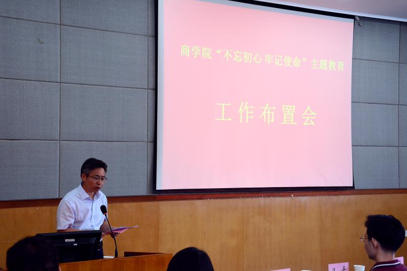 布置会上,任胜钢书记从总体要求、工作机构、具体工作安排、工作要求四个方面,全面解析了《XK星空体育“不忘初心,牢记使命”主题教育工作方案》,他指出,开展“不忘初心、牢记使命”主题教育要以习近平总书记的新时代特色社会主义思想为指导,全面把握“守初心、担使命,找差距、抓落实”的总要求,准确把握学校党委的工作部署,把学习教育、调查研究、检视问题、整改落实四项重点措施有机融合、贯穿始终,要充分发挥主题教育的正向牵引作用,实现主题教育与学院工作深度对接、同步推进。