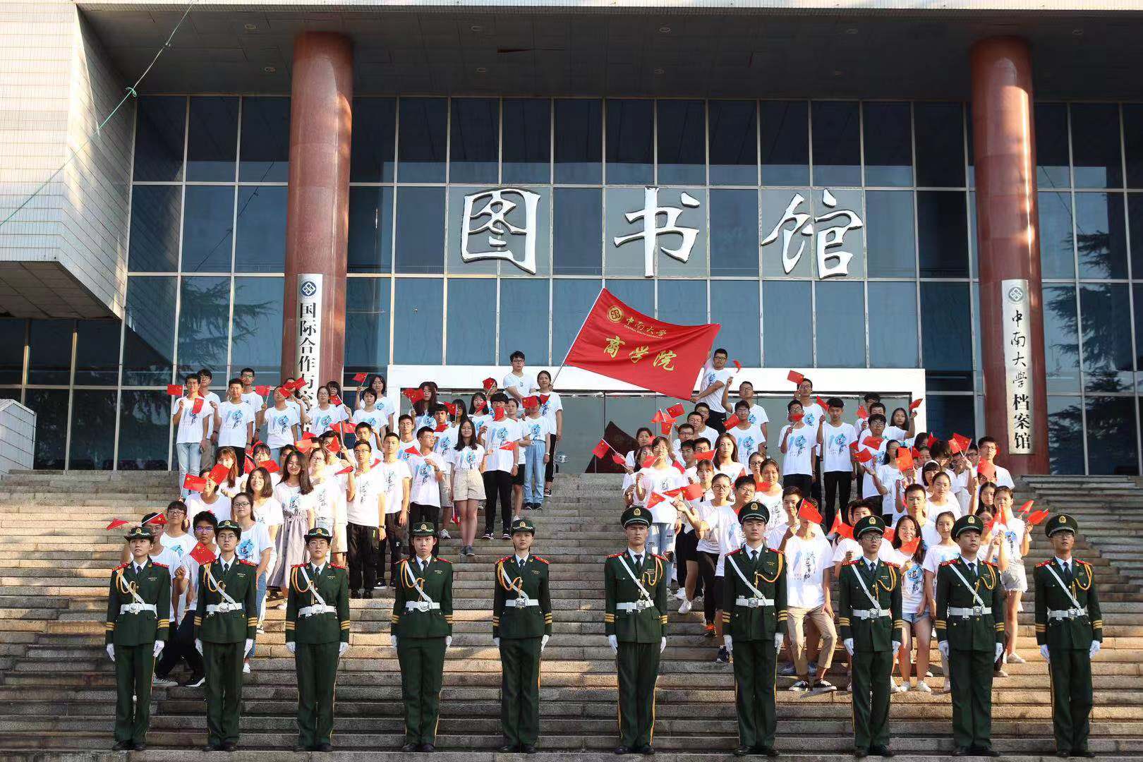据悉,今早在升旗仪式结束后,商院师生自发组织在本部图书馆门前手持红旗摆出“70”造型,致敬中国梦,共贺国庆。