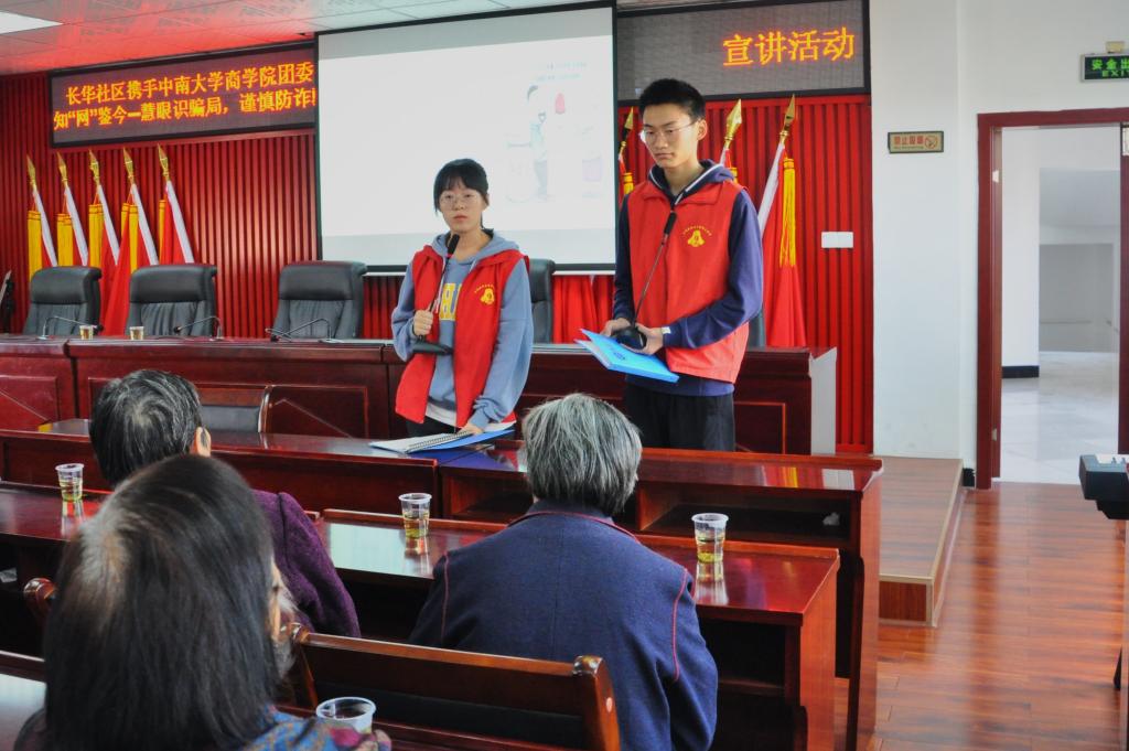 11月2日上午,在长华社区由XK星空体育团委携长华社区举办的防范诈骗、理性购买保健品的主题讲座顺利举行。本次活动意在增强老人的财产安全意识,倡导老人理性投资消费,在社区内营造学习防诈骗知识的风气。