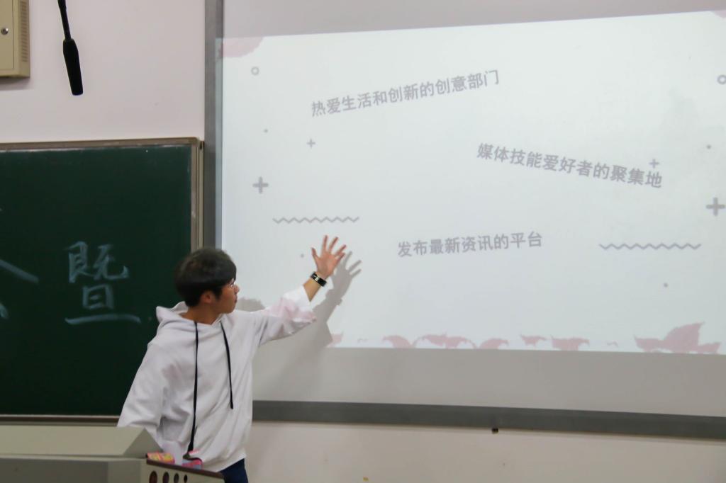 11月17日下午,XK星空体育第三届青年传媒中心培训会暨见面会在新校区A座201教室顺利召开。青年传媒中心指导老师杨鑫山,中心主任王勖、副主任吴明玲及全体成员出席会议。