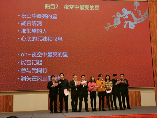 青年教师代表带来《歌曲串烧》,让人心潮澎湃,斗志昂扬。