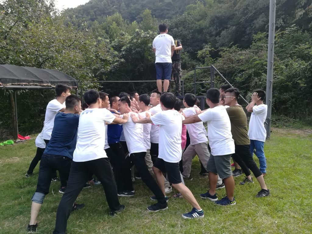 午餐休整后,全体学员分组进行“信任背摔”,教练先进行训练指导,强调了“信任背摔”的安全注意事项及台下队员的正确站姿,此项目旨在训练学员打破舒适圈,寻求突破,把自己交给团队,同时建立换位思考意识,增进团队成员间的理解与信任,带队的康静老师也走上台阶,参与了“信任背摔”。