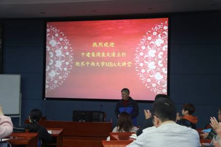 11月10日下午4点,中建集团企业文化部副主任,原中建三局三公司董事长、党委书记袁文清博士应邀来星空官网进行学术讲座。袁文清主任以“战略的坚守——中国建筑集团发展启示录”为题为大家带来了一场精彩的讲座。讲座由周雄伟教授主持,星空XKXK星空体育张颖副院长、MBA中心康静老师以及MBA学生一同聆听了本次讲座。